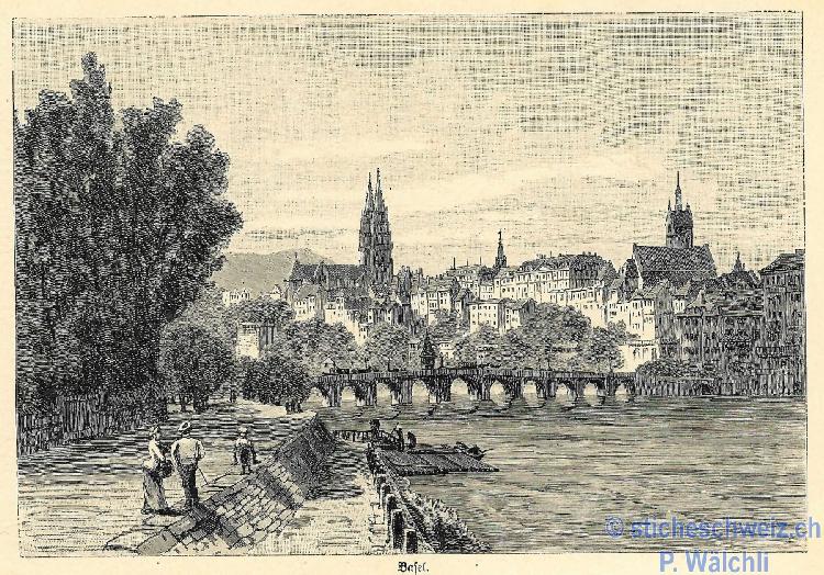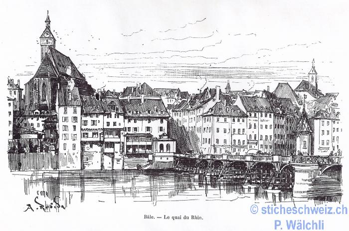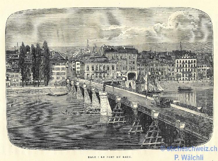 Basel:Rheinbrücke Le quai du Rhin , Host 1879 |
