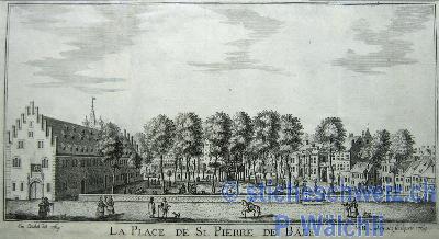 Basel: Der St. Peterplatz in Basel ,Litho 1861 |