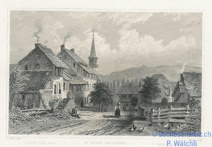St. Alban Kirche Häusergruppe Fuhrwerk , Stst 1865 |