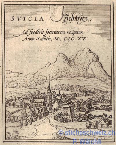 Schwyz Vogelansicht Ausschnitt , Kust 1580 |
