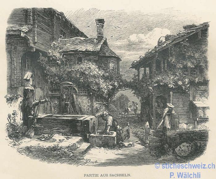 Sachseln Dorfstrasse Brunnen , Host 1880 |