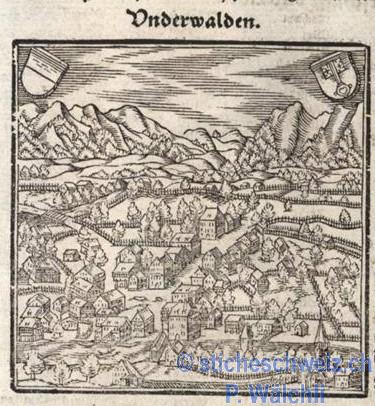 Sarnen Vogelansicht Stumpf , Hoschn 1548 |