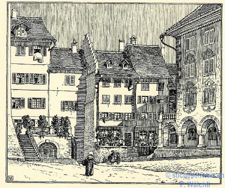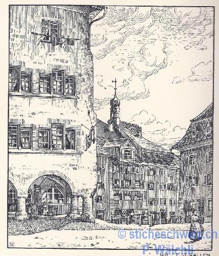 Wil Laubenhäuser Innenstadt , Litho 1908 |