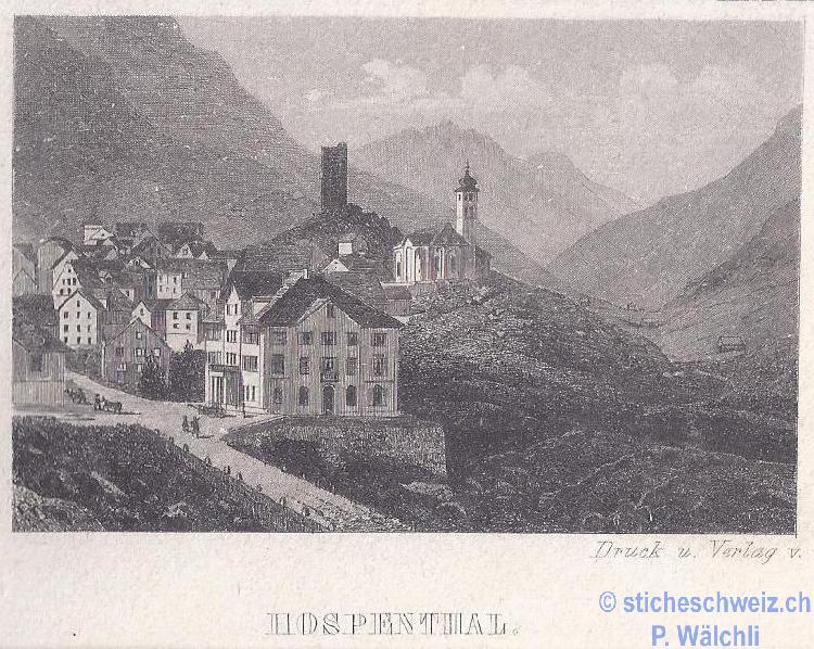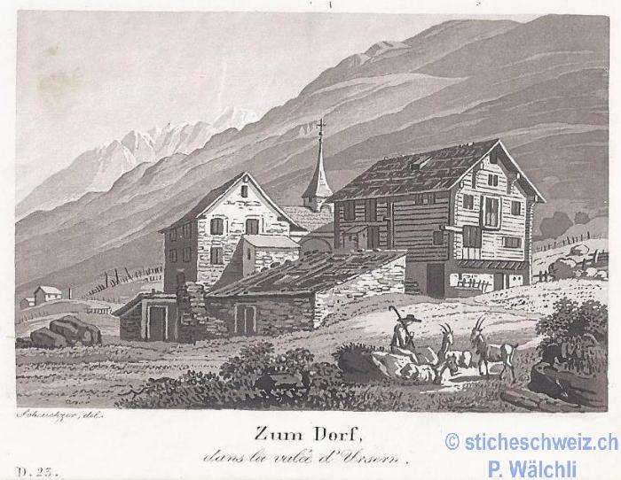 Zumdorf zum Dorf im Urserenthal , Aquat 1839 |