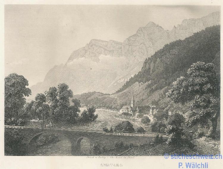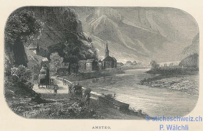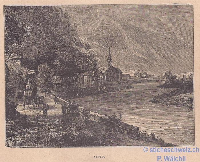 Wassen Wasen mit Brücken Kirche , Host 1897 |