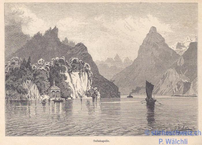 Tellskapelle Uferpartie Schiff , Host 1890 |