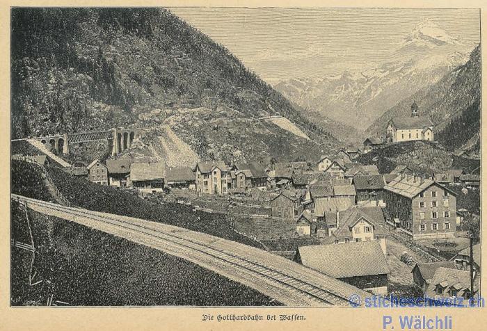 Wassen Brücken Kirche Gotthardbahn , Host 1893 |