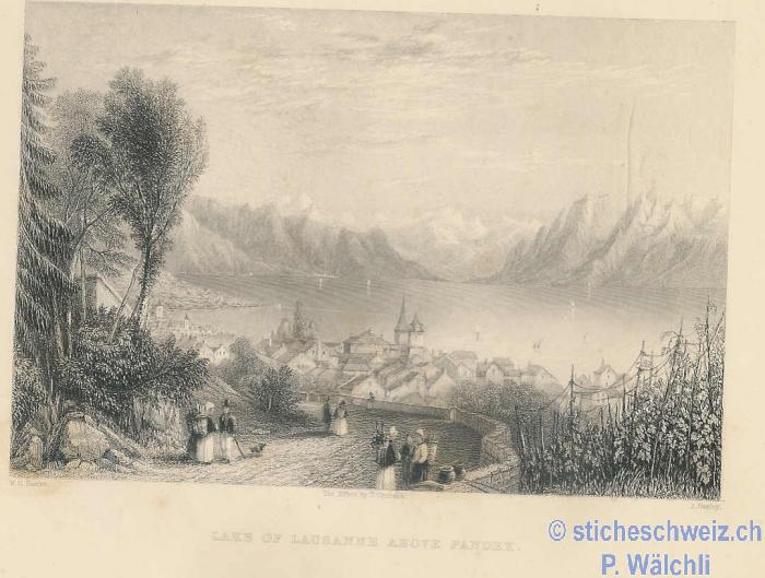 Vevey von oben mit Umgebung , Aquat 1830 |