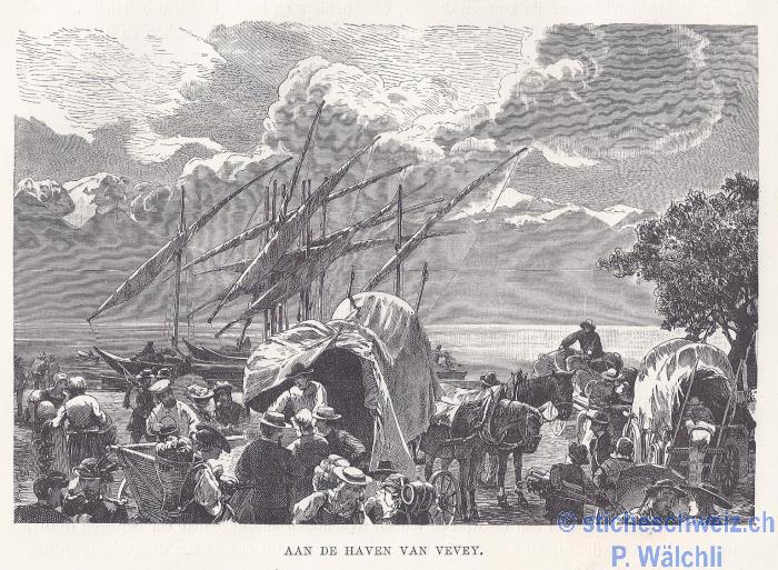 Vevey vom Seee her mit Schiffen , Kust 1642 |