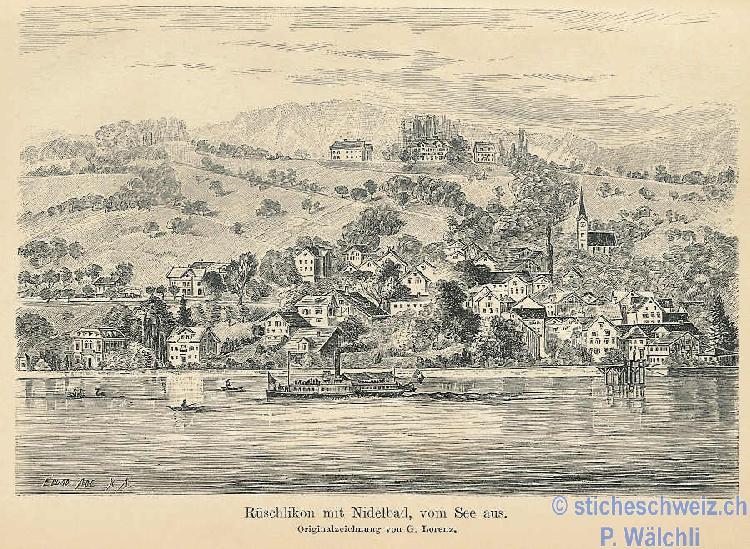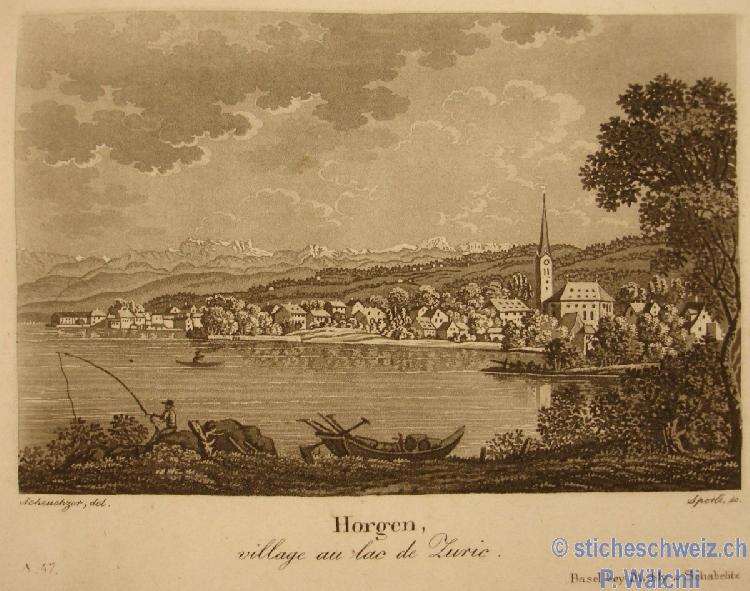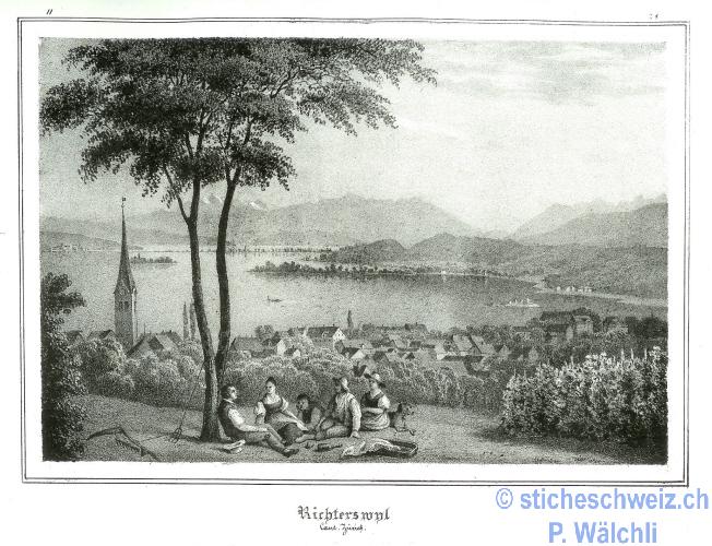396 Egg. au bord du Lac de Zurich avec les Compagnes au Cessour Dessine d apres la Nature |
