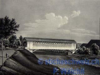 Andelfingen Brücke Umgebung , Aquat 1825 |